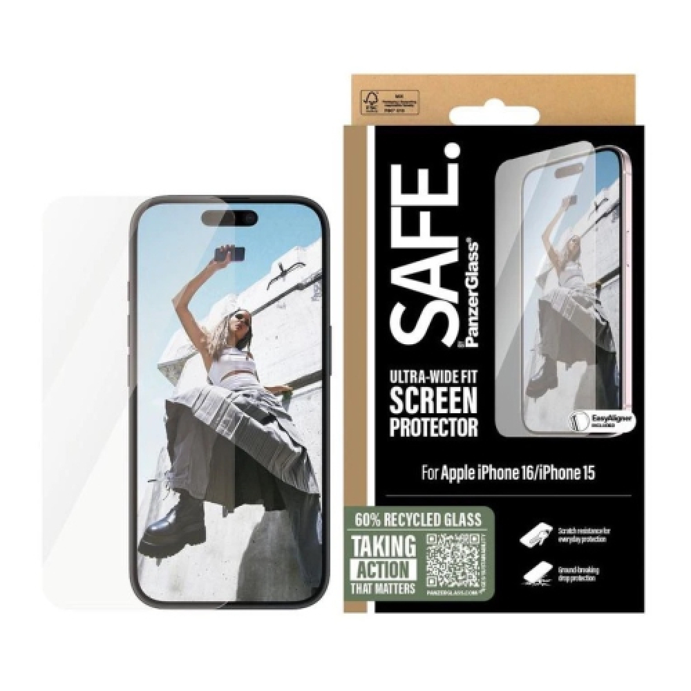 SAFE by PanzerGlass Ultra Wide Fit iPhone 16 Pro 6.3 – Clear
